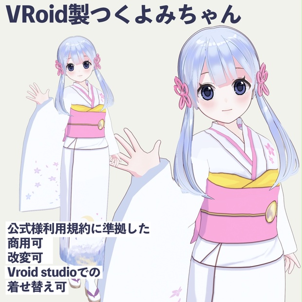 この素材は、フリー素材キャラクター「つくよみちゃん」の非公式素材です。 つくよみちゃんキャラクターライセンスに基づき公開しています。 VRoid Studioで製作したつくよみちゃんの3Dモデルになります。 編集可能.vroid&振袖付きV...