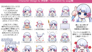 これは、2024年2月22日~3月22日に開催された「つくよみちゃんのA.I.VOICE化をもっと盛り上げるためのクラウドファンディング」の成功を記念して制作したものです。